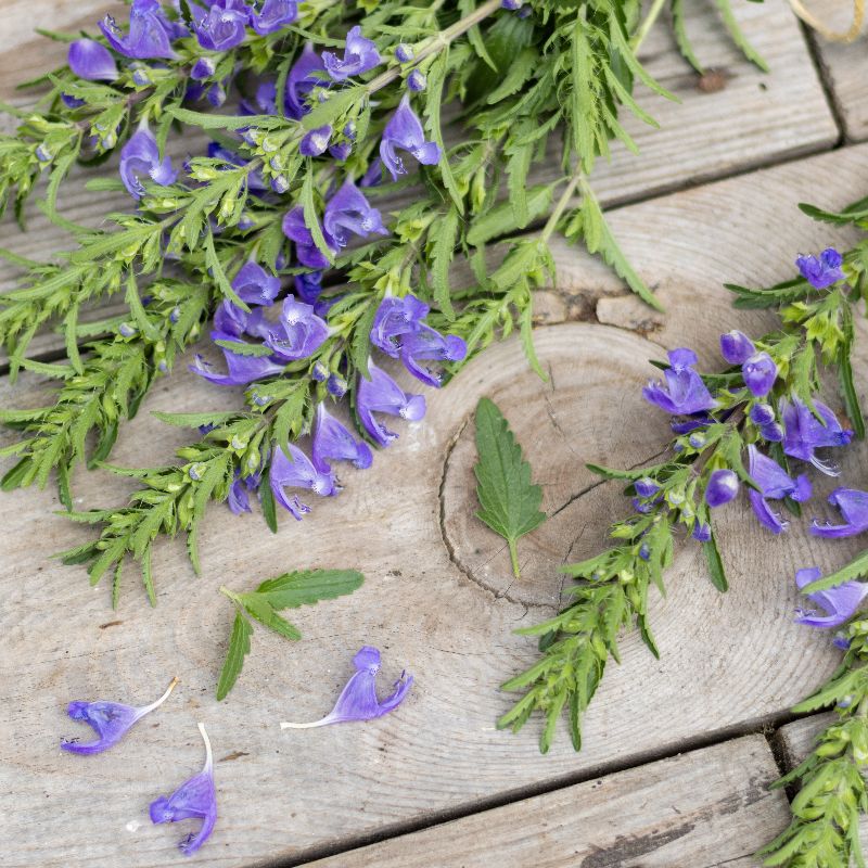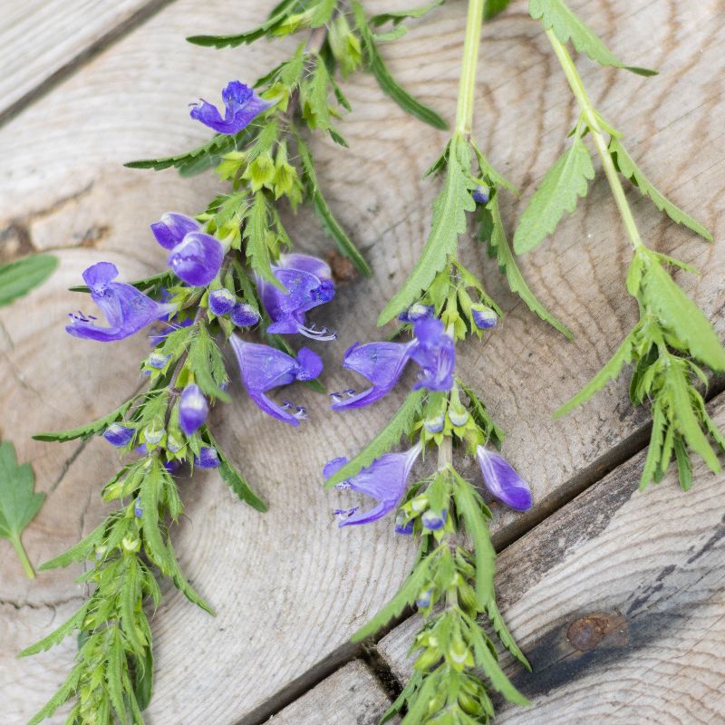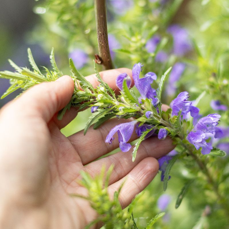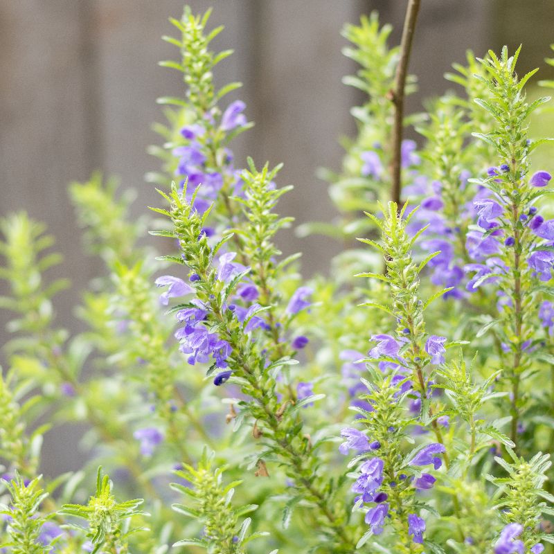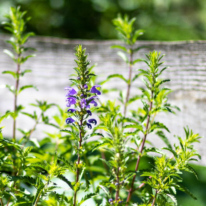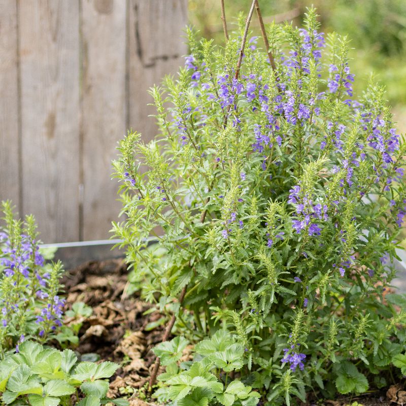 Einjährige aromatische Teepflanze mit großen, blauvioletten Lippenblüten, die zitronig riechen. Verwendet wird das blühende Kraut. Lichtkeimer.