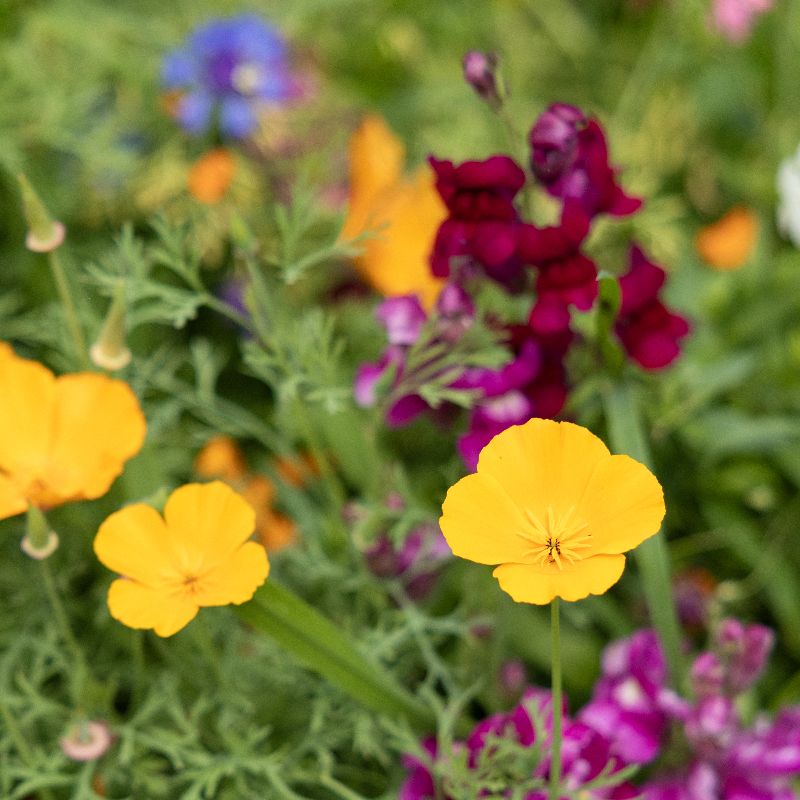 Bidens, Sommerastern, Wachsblume, Goldmohn, Eibisch, Zwerglupine, Kuhnelke, Buntschopfsalbei, Strohblume und weitere 10 Arten