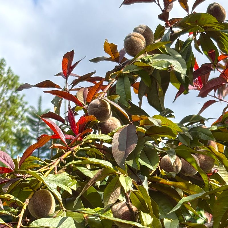 ‚Rubira‘ treibt mit tiefroten Blättern aus, später wechseln die Blätter über dunkle Rottöne in ein sattes Dunkelgrün. Mit dieser besonderen Laubwirkung setzt das Gehölz schon früh im Jahr einen markanten Akzent im Garten. Im April blüht sie in zartem Rosarot. Ab Ende August reifen kleine bis mittelgroße, süße Pfirsiche mit rotgelber Schale und gelbgrünem Fruchtfleisch.