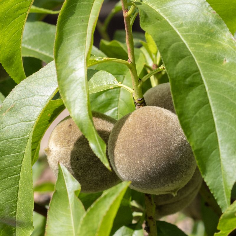 Der Säulenpfirsich ‚Selektion aus Rubira‘ fällt durch sein außergewöhnliches Laub auf: Der Austrieb beginnt tiefrot bis schwarzrot und wechselt im Sommer in ein sattes Dunkelgrün. Im April blüht er in Zartrosa, ab Ende August reifen die süßen, aromatischen Früchte mit rotgelber Schale und gelbgrünem Fruchtfleisch entstehen. Durch seinen schmalen, aufrechten Wuchs eignet sich dieser Säulenpfirsich ideal für kleine Gärten, Vorgärten sowie größere Kübel.