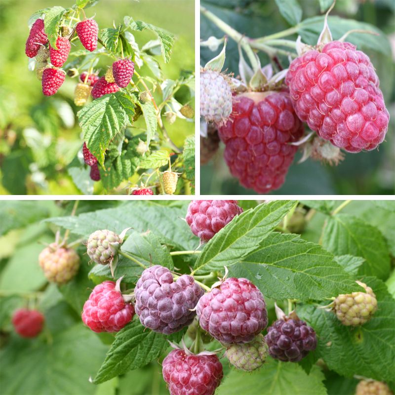 In unserem Sortiment finden Sie drei sorgfältig ausgewählte Himbeersorten: Herbsttragende Autumn First, sommertragende Schönemann und aromatisch violette Glen Coe.